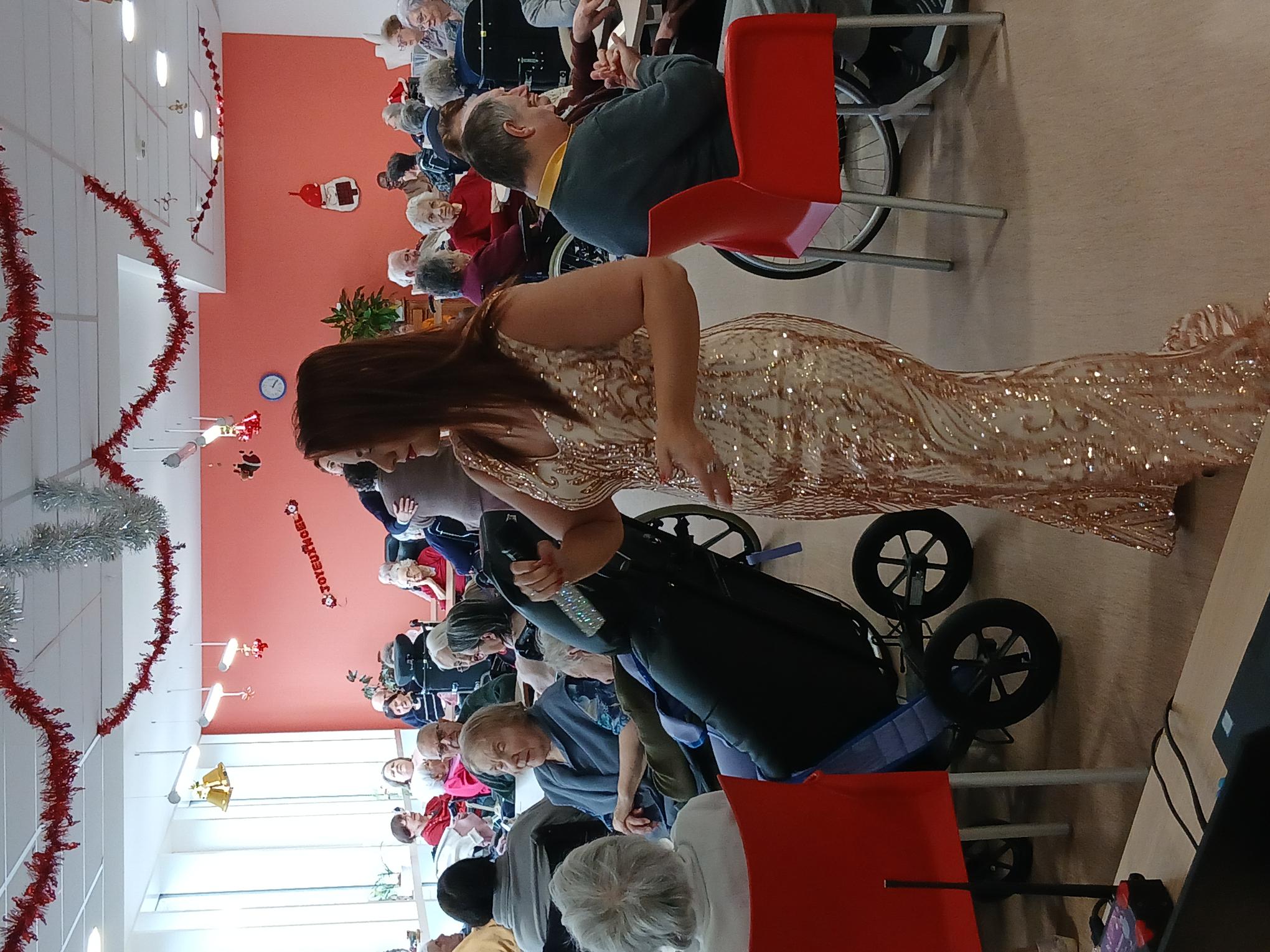 Élodie DIAMANT, artiste très connue sur notre territoire, a illuminé la salle à manger de la résidence Bellevue de ses paillettes et de son talent. Sa voix puissante et chaleureuse a transporté chacun dans un voyage musical rempli d’émotions.