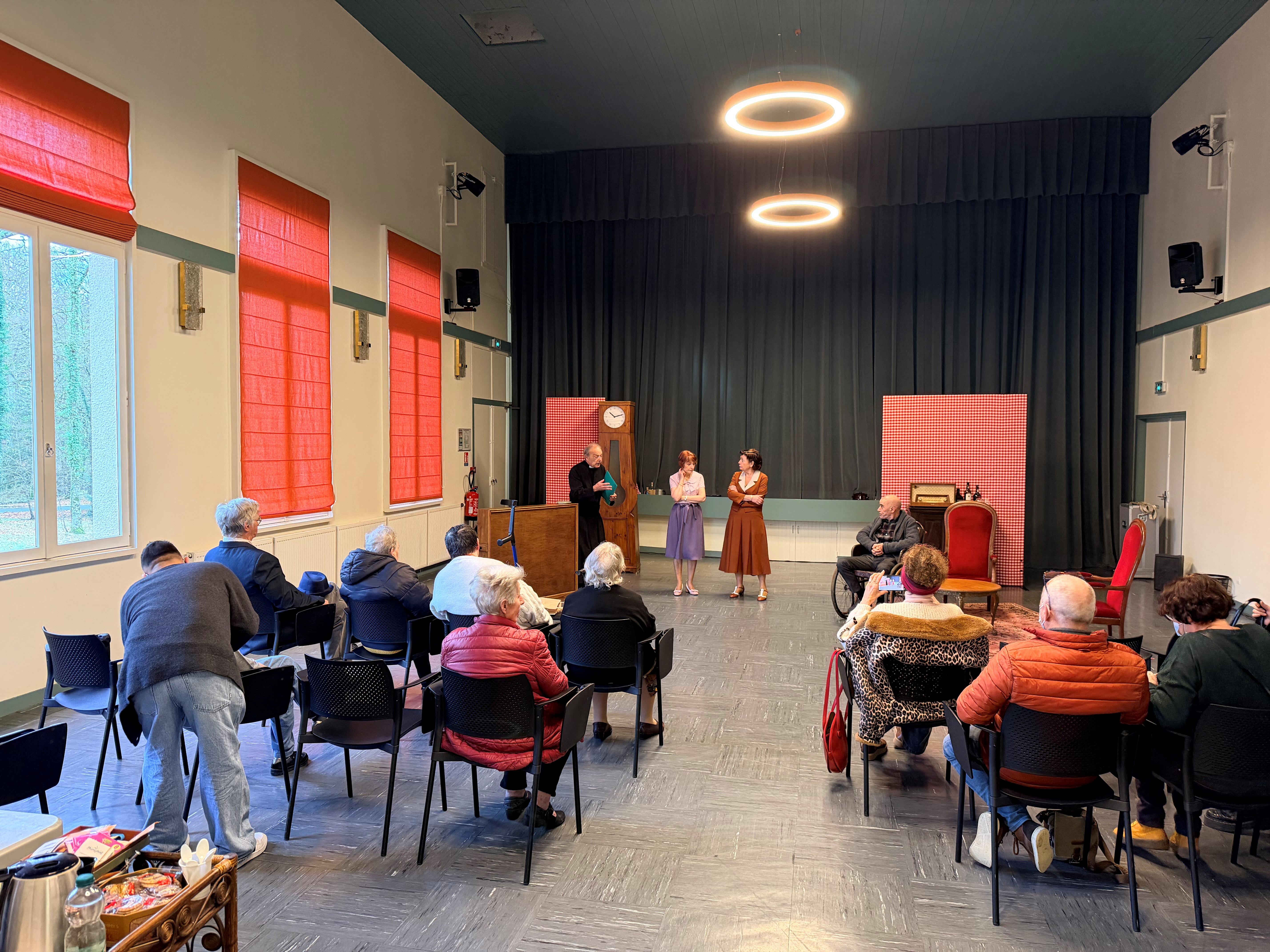 La pièce, jouée en filage – c’est-à-dire sans interruption – a duré environ 1h30. Cette répétition ouverte à tous a permis aux résidents, mais aussi aux familles et aux professionnels présents, de découvrir les coulisses du travail théâtral dans une ambiance chaleureuse et accessible.